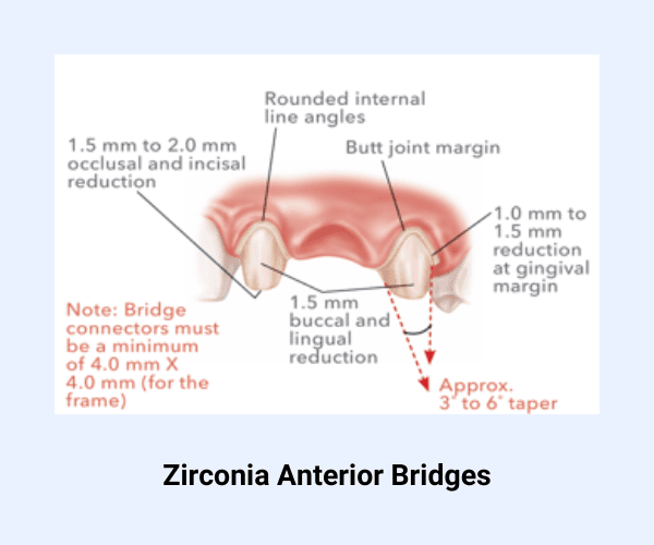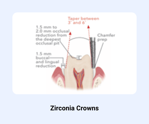 Zirconia crowns require a mechanically retentive natural tooth preparation similar to porcelain-fused-to-metal crowns.